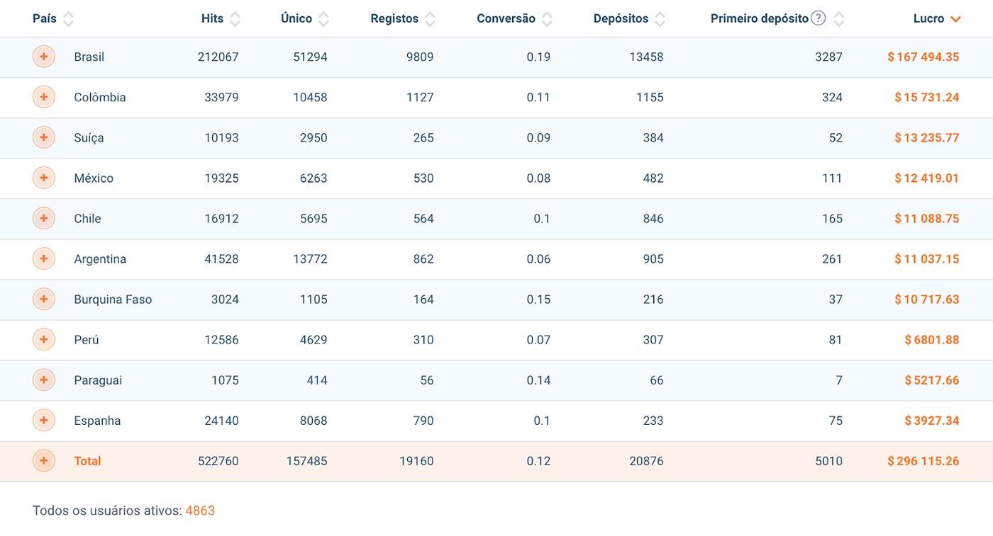 Para começar, selecionei aleatoriamente 50 países (todos, exceto aqueles que o PA não aceita). Este programa aceita tráfego de todos os países, exceto Austrália, Bélgica, Israel, Irã, Canadá, Letônia, Palestina, Rússia, Coreia do Norte, Síria, Sudão, EUA e Japão.